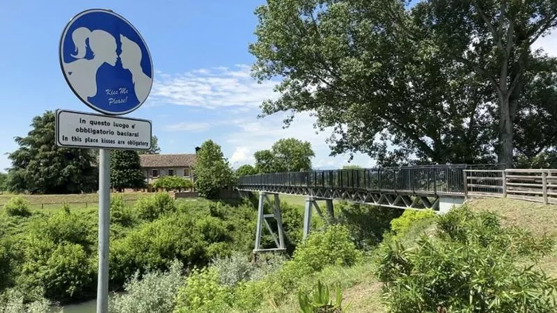 Volete vivere anche voi un momento romantico, magari anche immortalandolo con un selfie nei vostri social? A Cervarese Santa Croce in provincia di Padova, potete baciarvi sotto il cartello “Obbligatorio baciarsi” posizionato lungo la passerella sul fiume Bacchiglione che collega questo comune a quello di Veggiano, alla fine della laterale di via Molini.