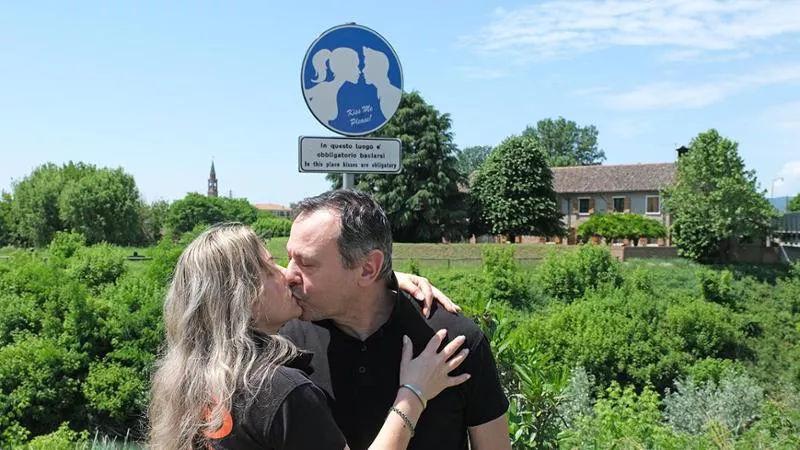 Questa logica è stata applicata di recente in un paese in provincia di Padova, a nord dei Colli Euganei, dove l’amministrazione comunale ha posizionato il cartello “Obbligatorio baciarsi”.